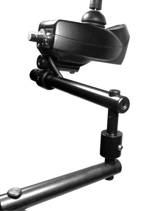 • Easy installation and virtually no maintenance • Full 345-degree movement that translates into multi-position use (straight, right offset, left offset, fold away) • Vertical adjustability for the joystick controller • Tension adjustment at both rotation points allows for resistance to be matched to the user |